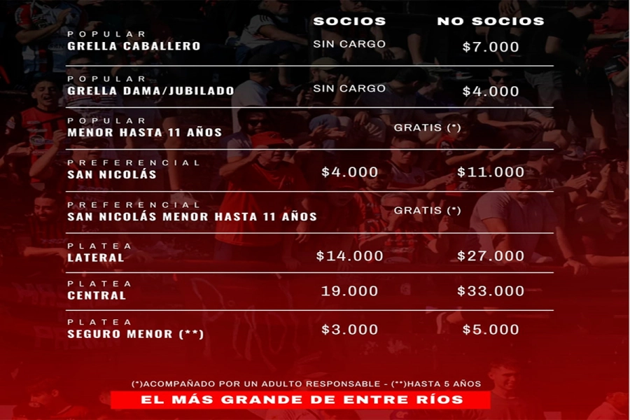 - Menores de hasta 11 años ingresan gratis en ambos sectores, beneficio que se mantuvo durante toda la temporada.