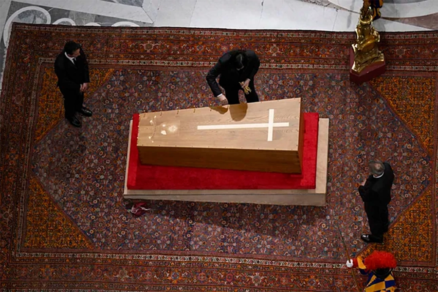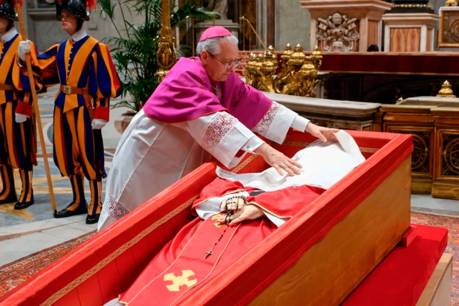 El féretro fue sellado con tres elementos simbólicos: una cruz, el escudo del Vaticano y una placa con su nombre, su edad y los años de su ministerio como Pontífice. La ceremonia culminó a las 21 (hora italiana), en el Altar de las Confesiones del Vaticano.