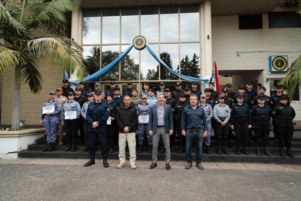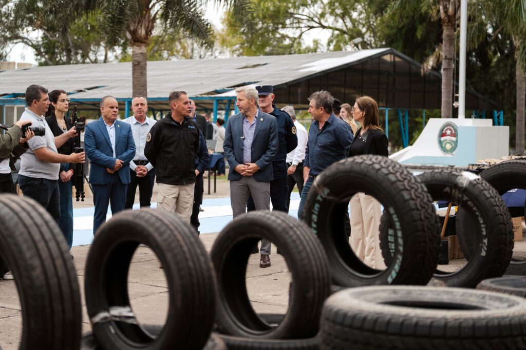 El acto se llevó a cabo en la Escuela Superior de Oficiales de Policía Dr. Salvador Maciá, con la presencia del jefe de Policía, Claudio González, y contó con la exhibición de chalecos antibala, tecnología y equipamiento especializado destinado a la Policía de Entre Ríos, Servicio Penitenciario y Bomberos Zapadores. Además, se sumaron elementos de comunicación, material de asalto y borcegos, así como 1.500 cubiertas nuevas provenientes de secuestros en pasos fronterizos de la provincia.