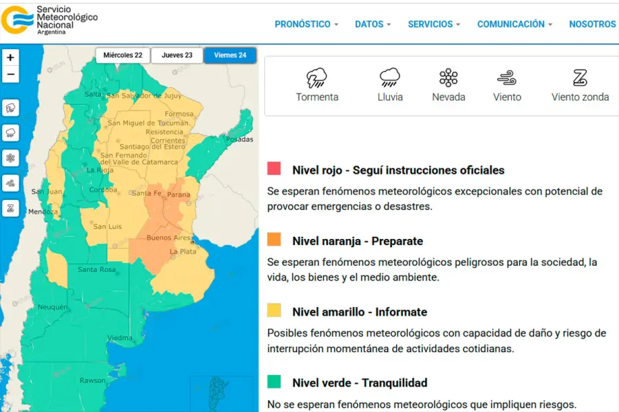 El Servicio Meteorológico Nacional (SMN) emitió una alerta naranja para gran parte de Entre Ríos, ante la posibilidad de tormentas fuertes o severas durante la mañana y el mediodía del viernes 24 de octubre.
